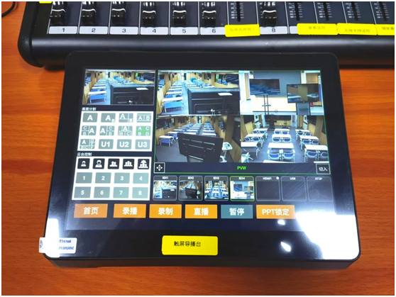 为了让教师轻松掌握录播系统,迪士普充分考虑教师课堂使用时的便捷性、易用性,高清录播系统中采用的智能触屏导播台能大大简化录制与导播操作流程。日常教师通过导播台控制面板即可一键式开启教学录制、录播或直播,课堂导播画面可自主选定布局,多机位课堂画面一屏监看。