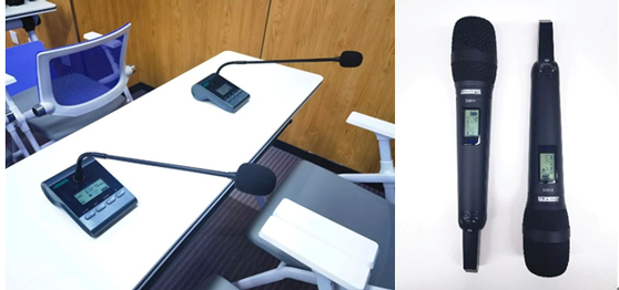 讲台下,学生们以小组为单位进行研讨学习。根据课堂使用需求,迪士普为每个讨论组配备一只台式话筒,教师则使用更为灵活便捷手持话筒作为拾音设备。