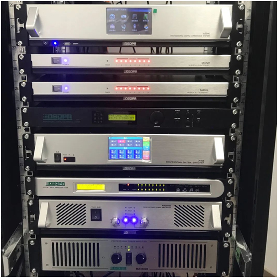 为确保会讨过程中发言人员声音清晰细腻,在音频控制处理部分,迪士普采用专业音频处理器、反馈抑制器、调音台、功放等音频处理设备,来解决音源信号电平过高或过低、频响不均匀、声场不均衡等问题,使声音衔接平滑圆润不失真,确保会场语言清晰。
