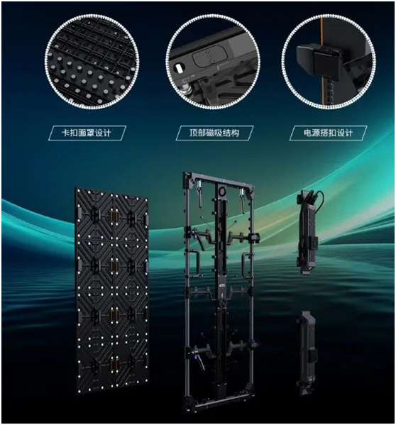 箱体连接处有磁吸结构,可轻松被激活或关闭,该结构可实现更快、更精准的安装效果,大幅度减少搭建舞台的时间成本。现场如需对产品进行维护,SW系列使用磁吸式模组,加上便捷式卡扣面罩设计,使得整体模组维护十分迅速、便捷;背部电源采用搭扣设计,可一键拆除,进一步提升整体维护体验。