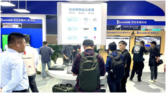 锐取以“场景融合•数字赋能”为主题,携全新信创录播方案、视讯直播间方案、政企视讯服务平台以及智慧会议培训全系列产品隆重亮相展会现场(EG4-01展位)。锐取自研国产化产品、创新性的视听产品和解决方案吸引了众多业内人士的关注。