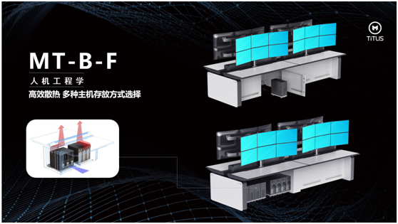 依托多年的控制中心服务经验,铁力山深刻理解商业企业对于高效、灵活且稳定工作环境的迫切需求,定制研发MT-B-F系列控制台产品,具有屏幕多元化、主机集成化、席位独立升降以及主动式散热框架等独特优势,为企业的控制中心带来了前所未有的高效、舒适与稳定体验。