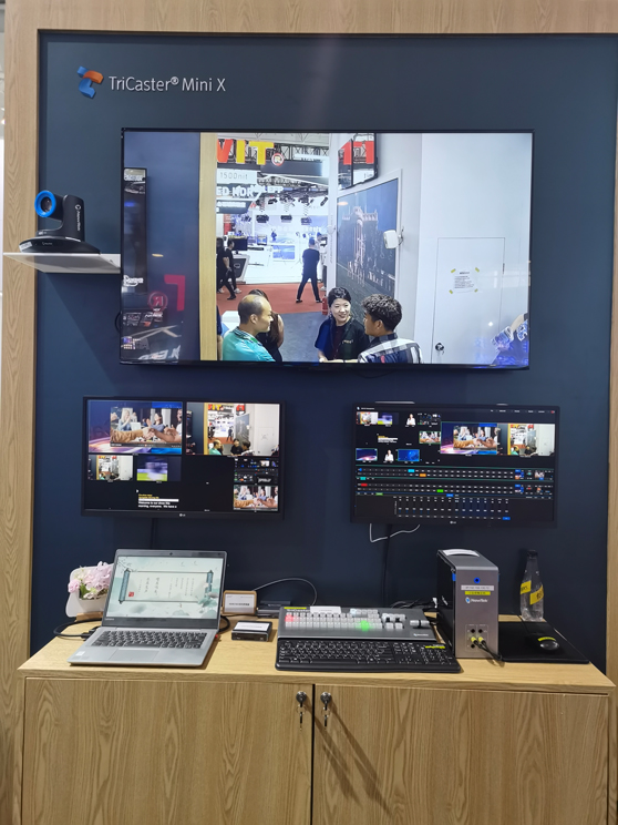 天道日新在展会现场,以Vizrt TriCaster®为核心,展示了一系列Vizrt TriCaster®解决方案和产品。