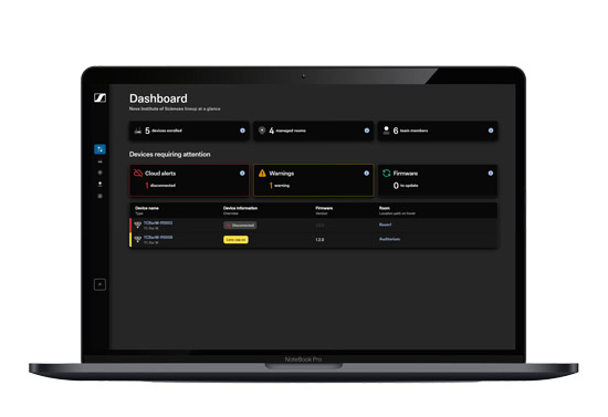 无论您身处办公室、奔波于差旅途中,还是居家远程办公,只需打开浏览器即可轻松访问DeviceHub。用户可通过统一直观的管理界面,完成对所有森海塞尔设备的集中管理、远程配置和实时监控,帮助管理人员随时随地掌握设备状态,大幅简化日常运营。