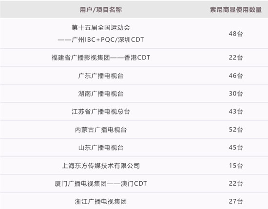 2025年索尼商显广电行业用户/项目清单(部分,按首字母顺序)