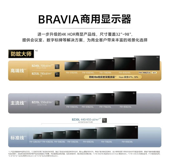 索尼BRAVIA商用显示器拥有丰富的产品线