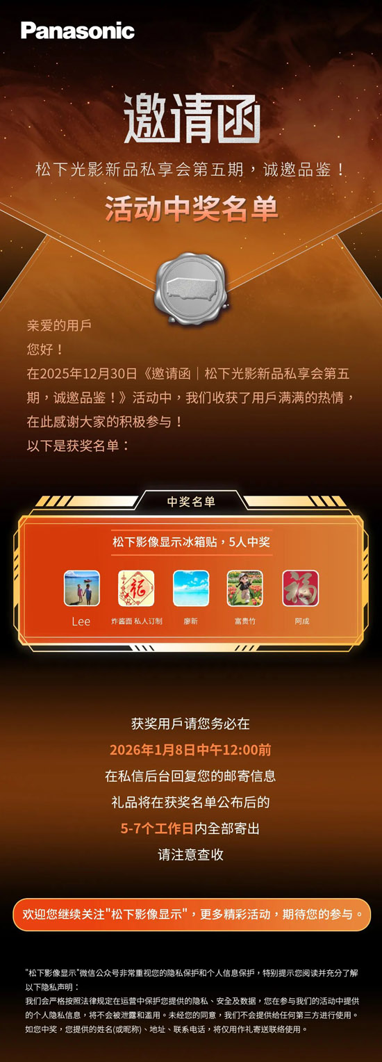 关键词: 松下影像显示、松下、中奖名单
